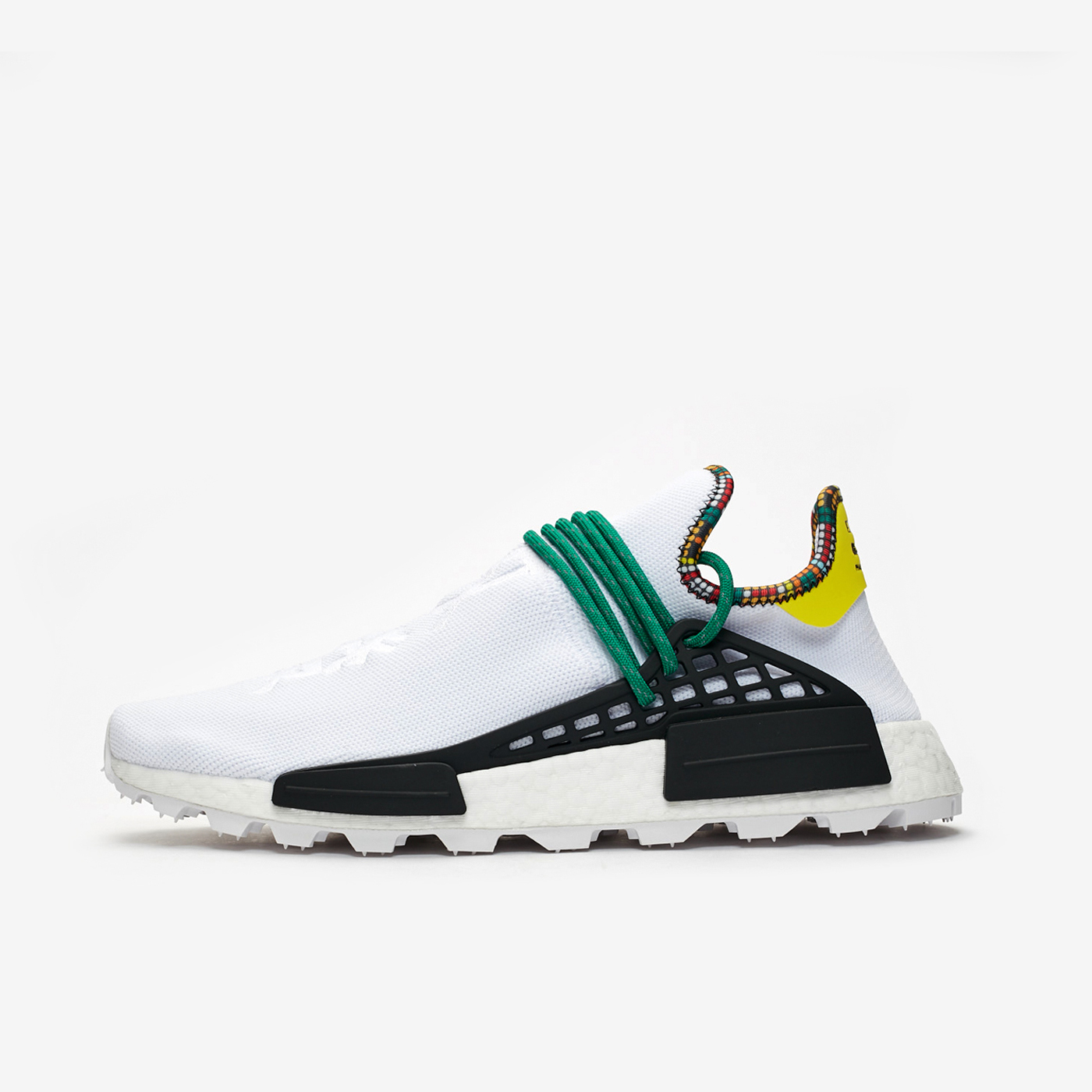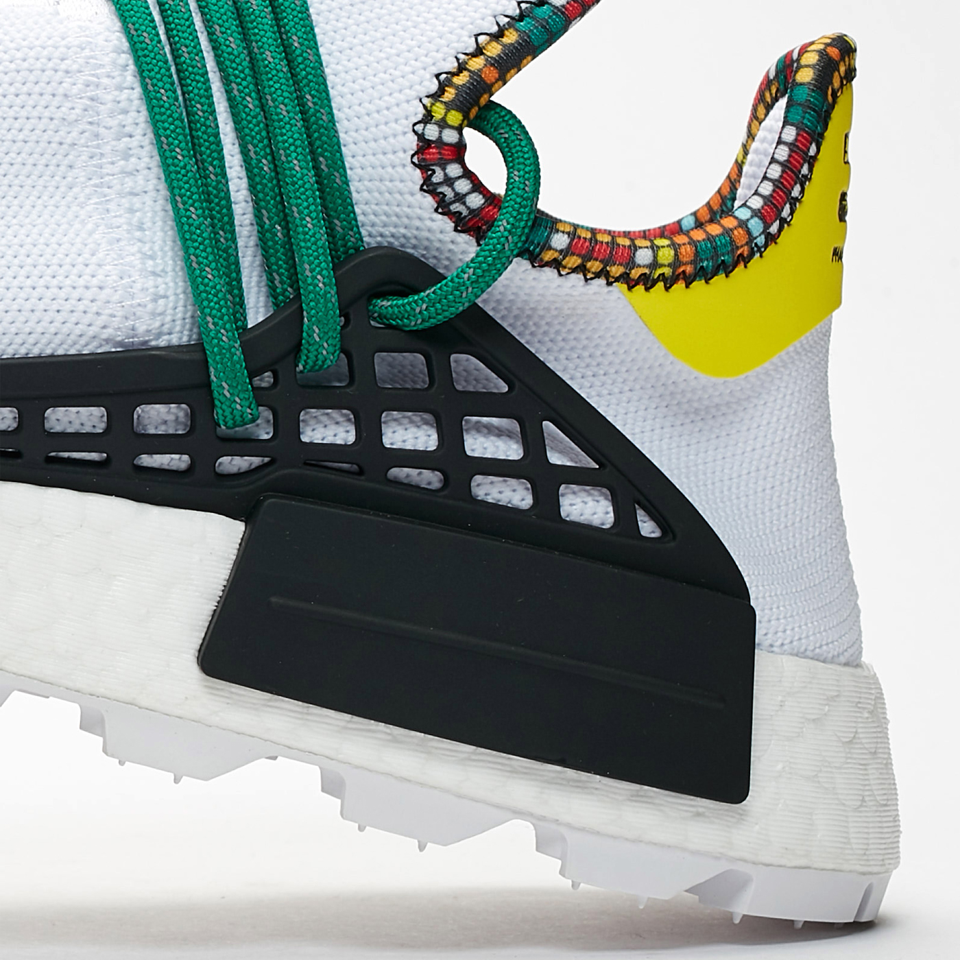 Pharrell și adidas își continuă colaborarea cu cea mai recentă versiune a pachetului „Inspiration”. Silueta albă vine îmbrăcată în lumini multicolore și o talpă intermediară BOOST. Silueta a fost puternică de ceva timp și adi nu este încă gata.
