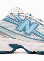 Modelul New Balance 740 „Blue Agate” prezintă o parte superioară respirabilă din plasă deschisă în două tonuri. Suprapunerile albe din plasă sandwich adaugă textură și îmbunătățesc circulația aerului. Accente de piele argintii metalizate apar pe apărătoare de noroi, orificii și călcâi, oferind o estetică retro inspirată de Y2K. Detaliile albastre vibrante evidențiază logo-ul N de la mijlocul piciorului, buclele de șiret și branding-ul pentru un contrast îndrăzneț.