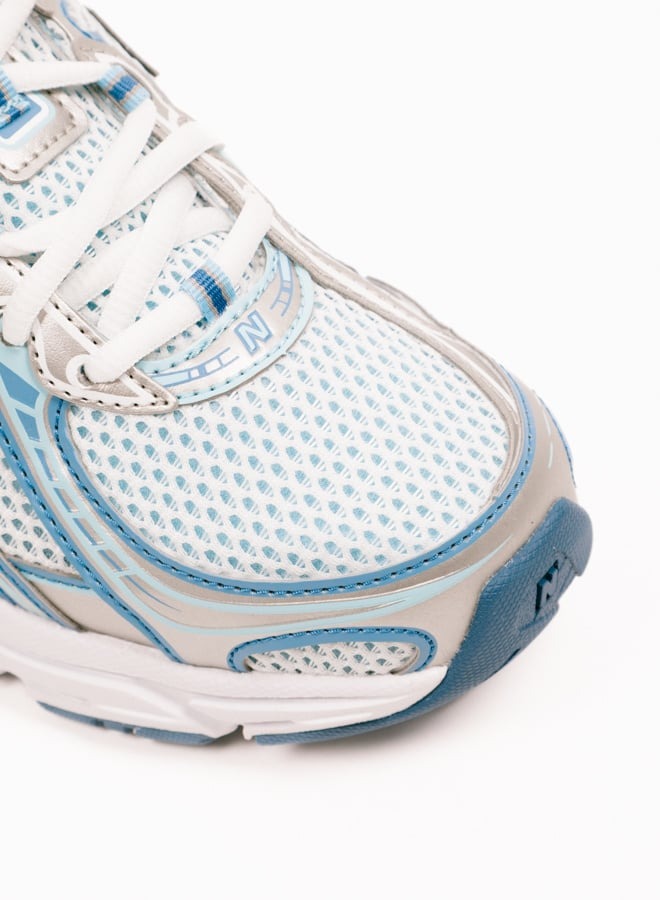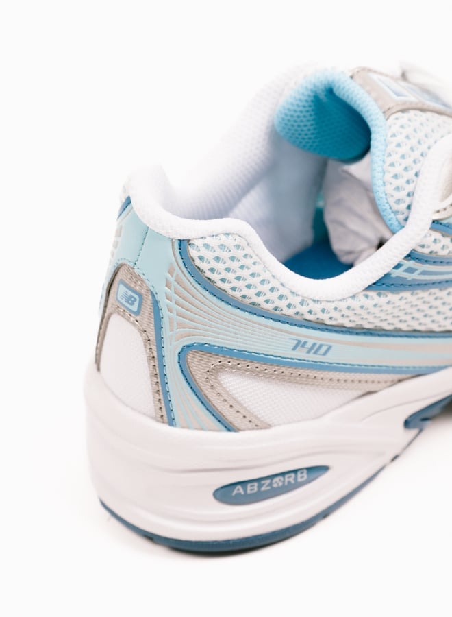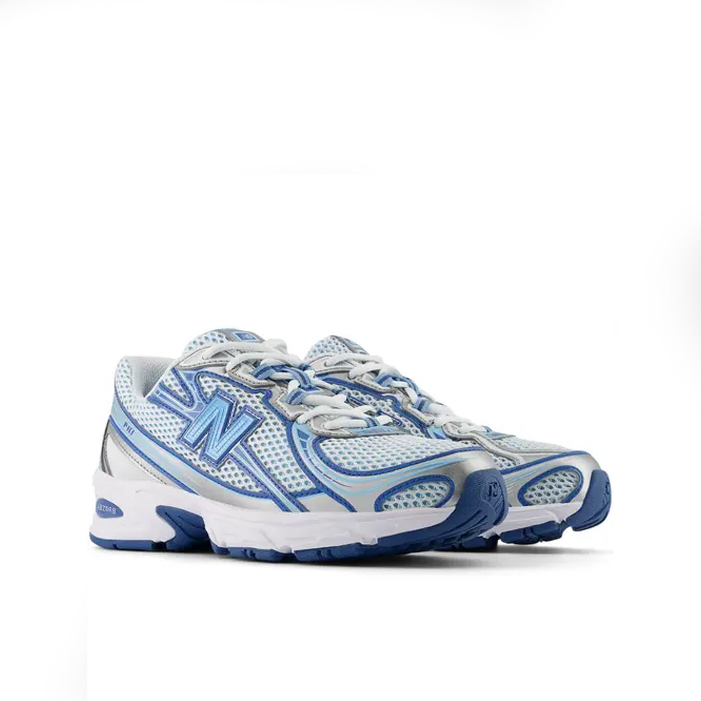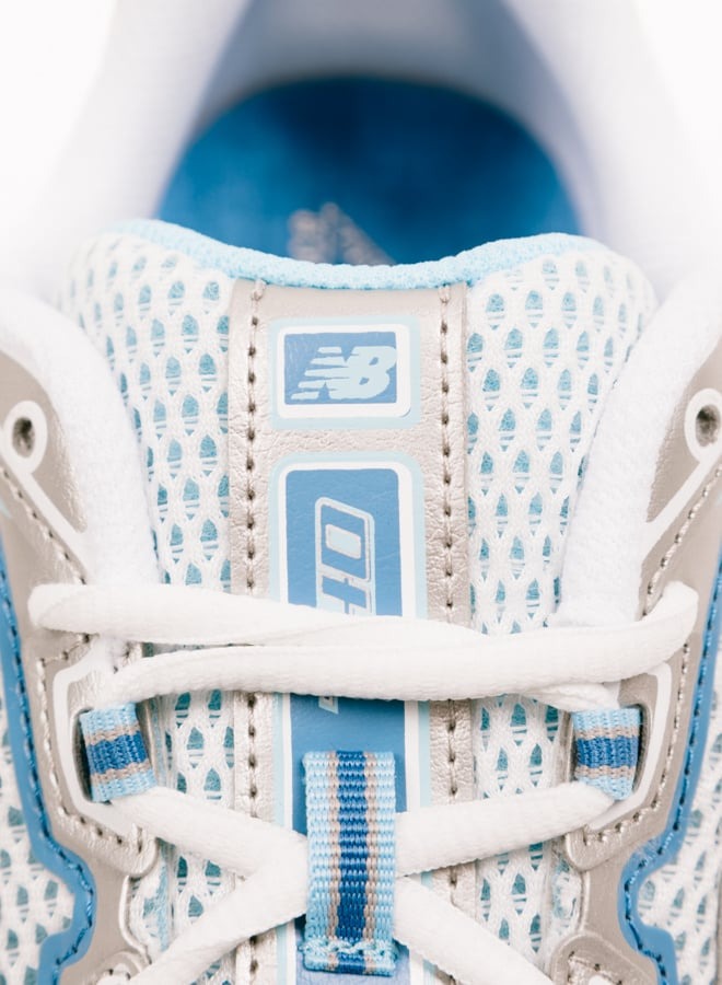 Modelul New Balance 740 „Blue Agate” prezintă o parte superioară respirabilă din plasă deschisă în două tonuri. Suprapunerile albe din plasă sandwich adaugă textură și îmbunătățesc circulația aerului. Accente de piele argintii metalizate apar pe apărătoare de noroi, orificii și călcâi, oferind o estetică retro inspirată de Y2K. Detaliile albastre vibrante evidențiază logo-ul N de la mijlocul piciorului, buclele de șiret și branding-ul pentru un contrast îndrăzneț.