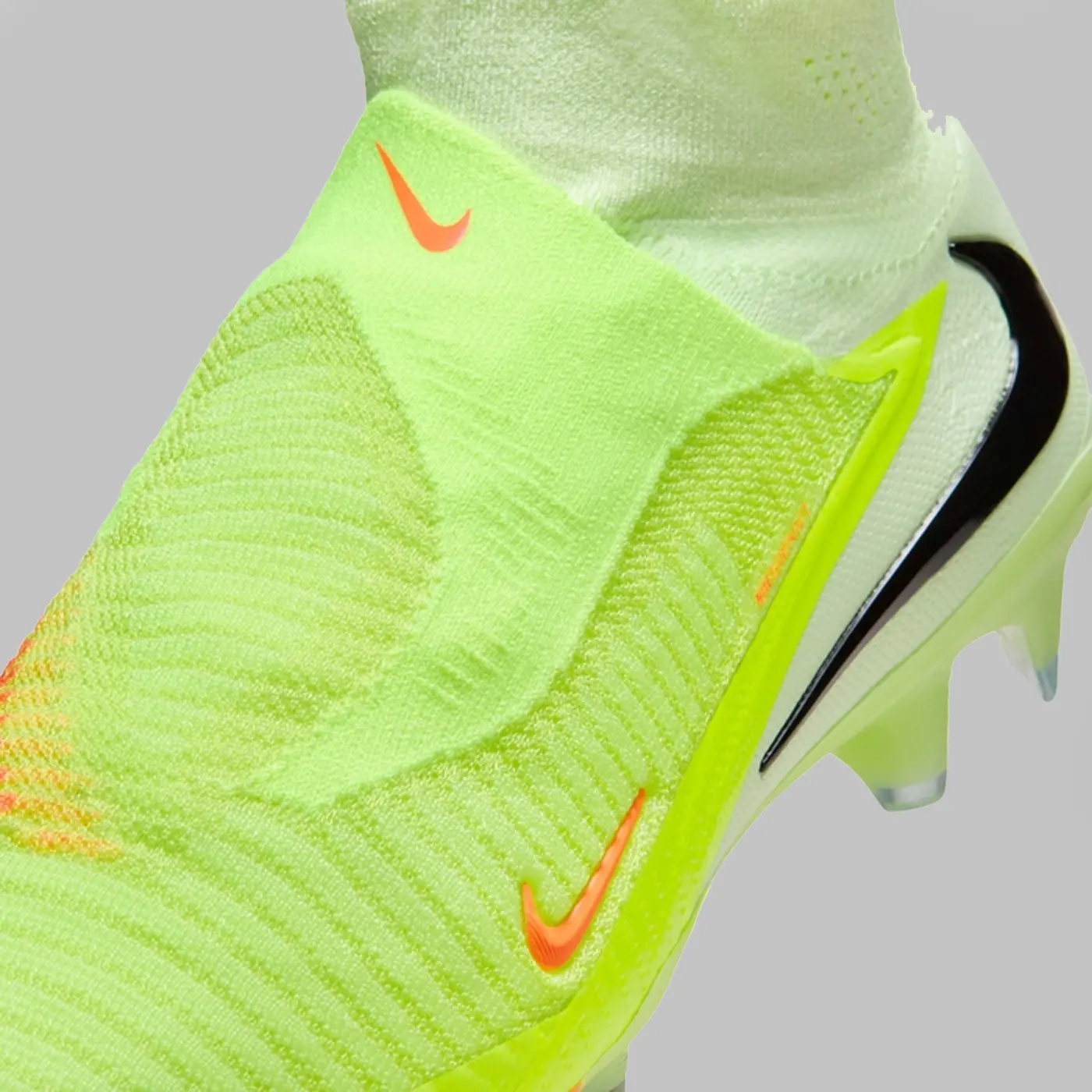 O nouă ramă a pantofului vă oferă o potrivire mai naturală, în special în zona degetelor. Ajută la mularea piciorului și vă aduce mai aproape de minge pentru lovituri și mai bune de la crampoane la minge. Gulerul Dynamic Fit înfășoară glezna în material Flyknit moale și elastic pentru o senzație de siguranță. Sistemul de înșirare Ghost acoperă șireturile odată ce le legați pentru a limita distragerile.