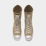 Chuck 70 este disponibil în două siluete – versiunea familiară cu vârf înalt și versiunea înaltă „XX”, ambele din piele groasă ( piele intoarsa pe exteriorul pantofului si piele pe interior). acest lucru, împreună cu alte câteva elemente de design, conferă pantofului un aspect vintage cool. Tenisul Thunderbolt este disponibil într-o piele de căprioară maro, dar stilul care ne-a plăcut în mod deosebit este cel Thunderbolt Denim Low Top, care, după cum sugerează și numele, a fost realizat din denim brut vopsit cu indigo. Destul de tare, nu?