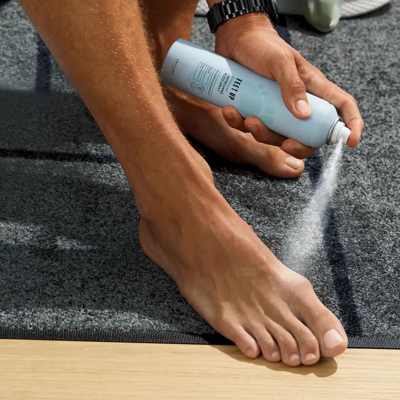Pulverizează pe picioarele curate și uscate, ținând recipientul la 15 cm distanță de piele. Potrivit și pentru utilizare în interiorul încălțămintei. Excelent pentru a menține picioarele și încălțămintea proaspete după sport!