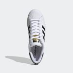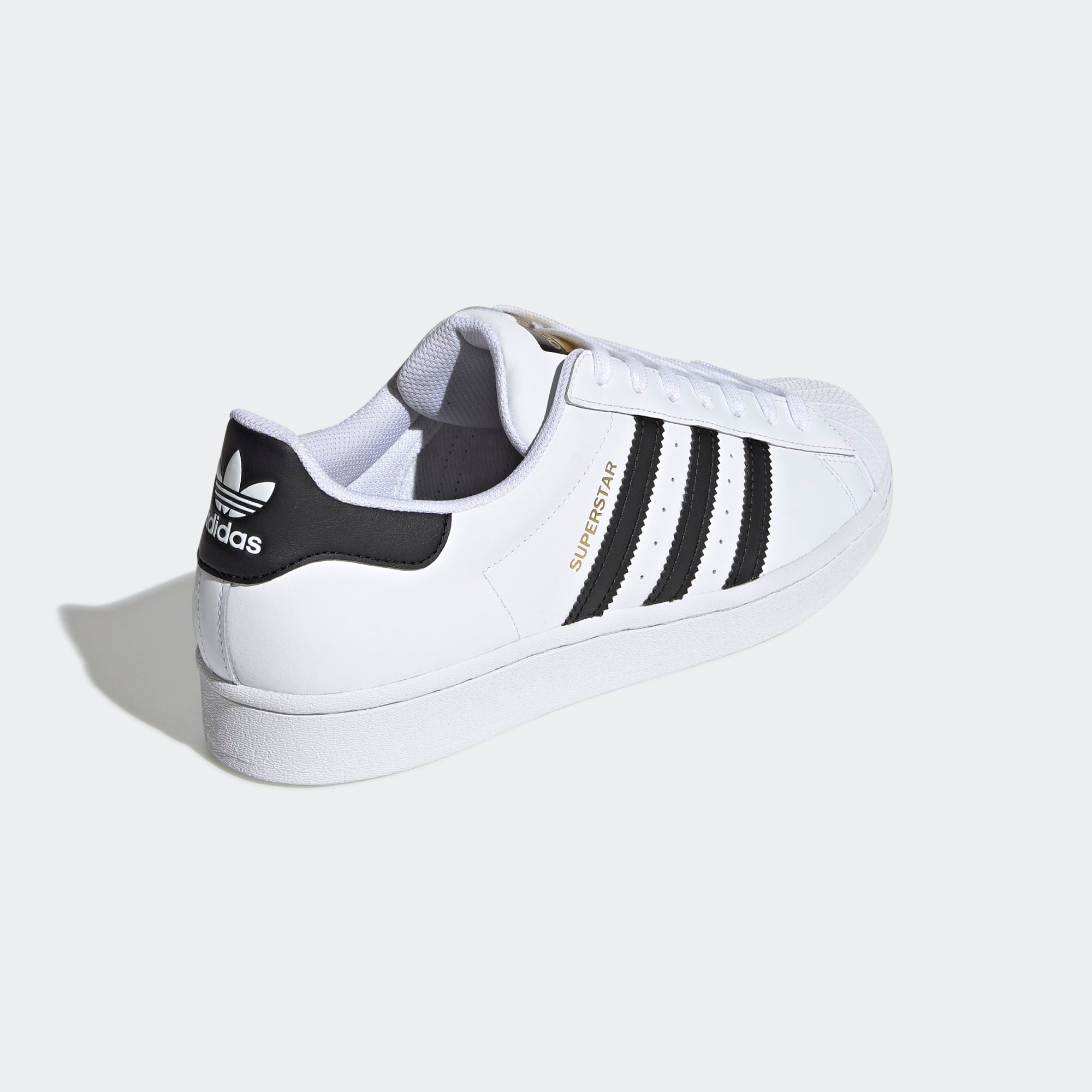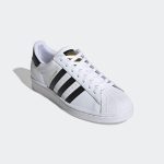 Detalii suplimentare: Pe lângă cele trei dungi negre, pantofii prezintă inscripția “SUPERSTAR” în auriu deasupra dungilor, iar pe limbă și pe spatele călcâiului se regăsește logo-ul Adidas Originals în combinație de negru și auriu, adăugând un plus de stil și recunoaștere brandului.