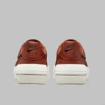 Fețea superioară „Mars Stone”, bogat nuanțată, este tratată pe întreaga suprafață a panourilor din piele netedă, fiind în contrast cu o talpă intermediară îmbrăcată în „Sail”, pentru o selecție fină de blocare a culorilor în două tonuri. Siluetele Swooshes, șireturile și construcția limbii din plasă sunt toate asortate cu nuanța portocalie ruginie, în timp ce un „Burgundy Crush” cu aromă de ciocolată umple decupajul secundar Swoosh, iar atât limba, cât și călcâiul sunt brodate cu brandingul „NIKE AIR”.