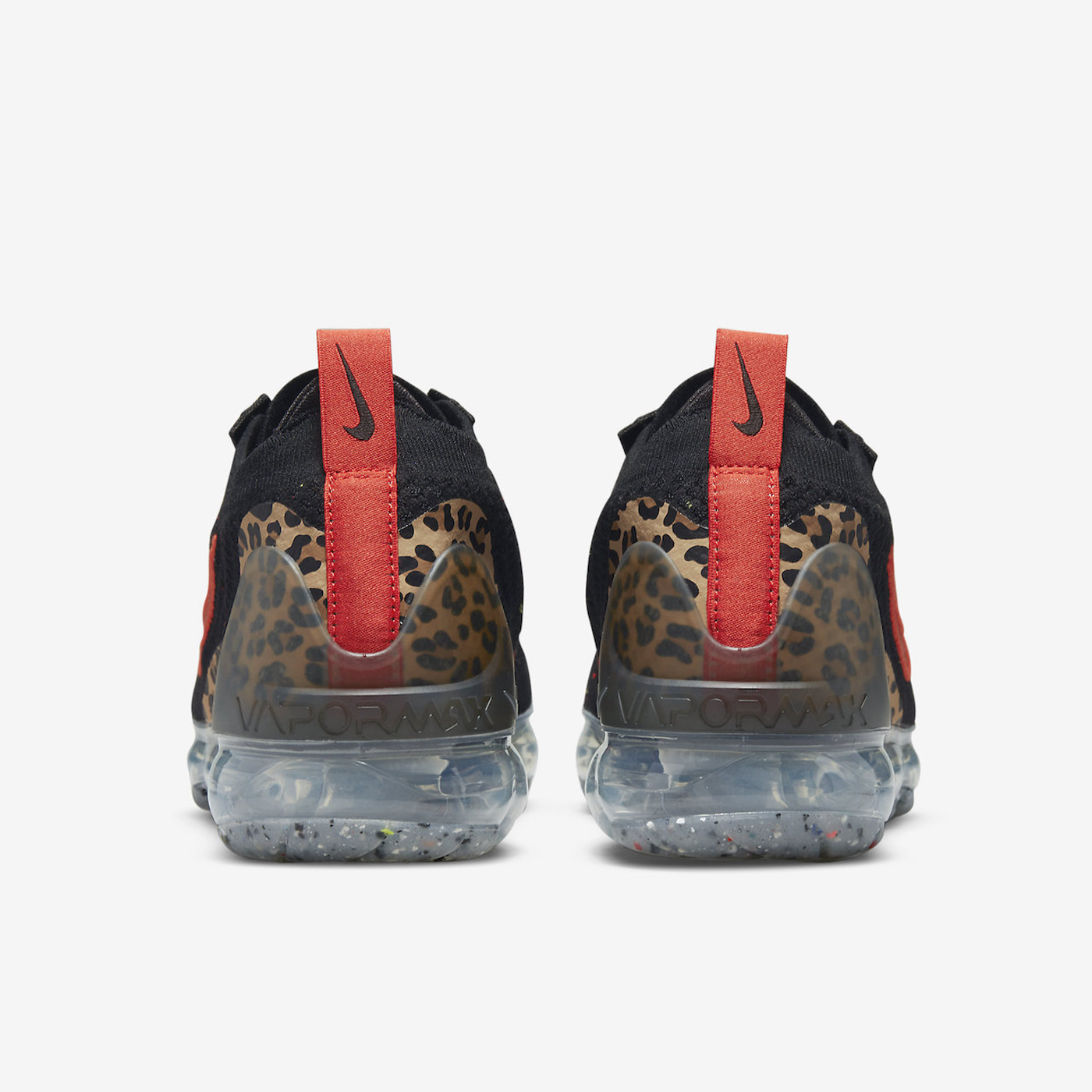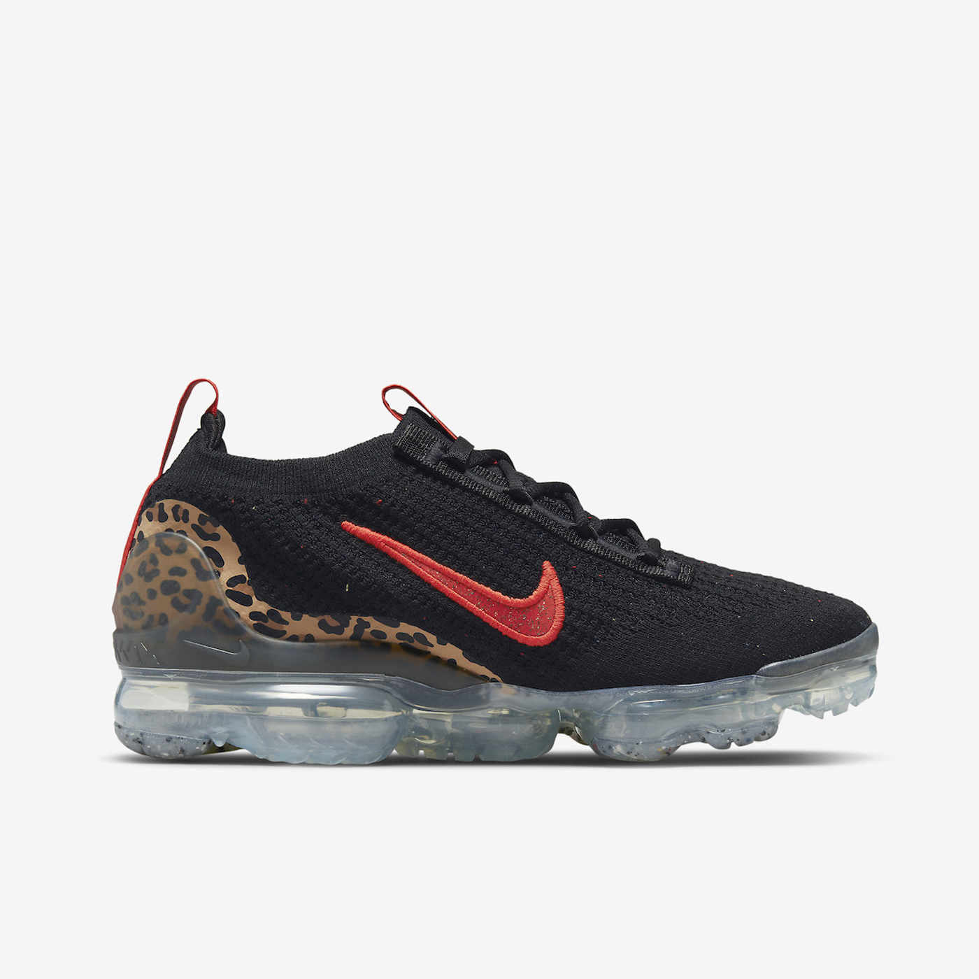 Nike face o plimbare pe partea sălbatică cu această nouă variantă de culoare a Nike Air VaporMax 2021 , care este echipată cu imprimeu leopard. Acest Nike Air VaporMax 2021 începe prin a fi acoperit cu o construcție Black Flyknit pe toată partea superioară, care a fost, de asemenea, lovită de pete subtile multicolore. Atributele definitorii ale acestui Air VaporMax 2021 sunt imprimeul leopard de culoare maro/maro/negru văzut pe talonul călcâiului, precum și accentele de roșu pe Swooshe-urile brodate și labele de tragere ale limbii și călcâiului. O talpă intermediară VaporMax translucidă, dedesubt, cu detalii Grind reciclate pe talpa exterioară din cauciuc, înfășoară lucrurile pe acest Nike Air VaporMax 2021.