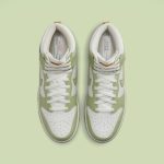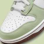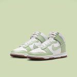 Împodobită anterior cu Swoosh-uri de chenille și chiar curele de campionat, Nike Dunk High adaugă în mod constant arme noi la arsenalul său. Și în timp ce această ultimă pereche – numită „Honeydew” – poate fi mult mai ușoară în ceea ce privește accesoriile, ea compensează ceea ce îi lipsește cu un brand nou și detalii reciclate. Spre deosebire de numeroasele variante de culoare „Next Nature” care au fost lansate până în acest moment, acest Dunk High renunță la includerea logo-ului Circular Design. În schimb, branțurile din stânga și din dreapta sunt ștampilate cu propriile etichete, ale căror modele imită etichetele probabil utilizate în timpul producției. În altă parte, limba, de asemenea, este îndepărtată de marca sa obișnuită: în locul ei, o piele tăbăcită îmbracă dispozitivul, asortând clapeta de tragere de-a lungul călcâiului. Restul căptușelii este apoi îmbrăcat în nuanțe de „Honeydew”, precum și „Summit White”, ambele fiind aplicate pe ceea ce arată ca piele reciclată. Mai jos, talpa exterioară nu este la fel de ambiguă, implementând în mod clar semnătura Grind Rubber de la Nike.