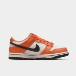 Fabricat exclusiv pentru copii, acest Nike Dunk Low GS „Halloween” are o bază festivă din piele „Sail”, accentuată cu suprapuneri contrastante „Orange” și branding negru. Șireturile portocalii, împreună cu talpa intermediară albă și talpa exterioară neagră, împinge și mai mult vibrațiile de Halloween.
