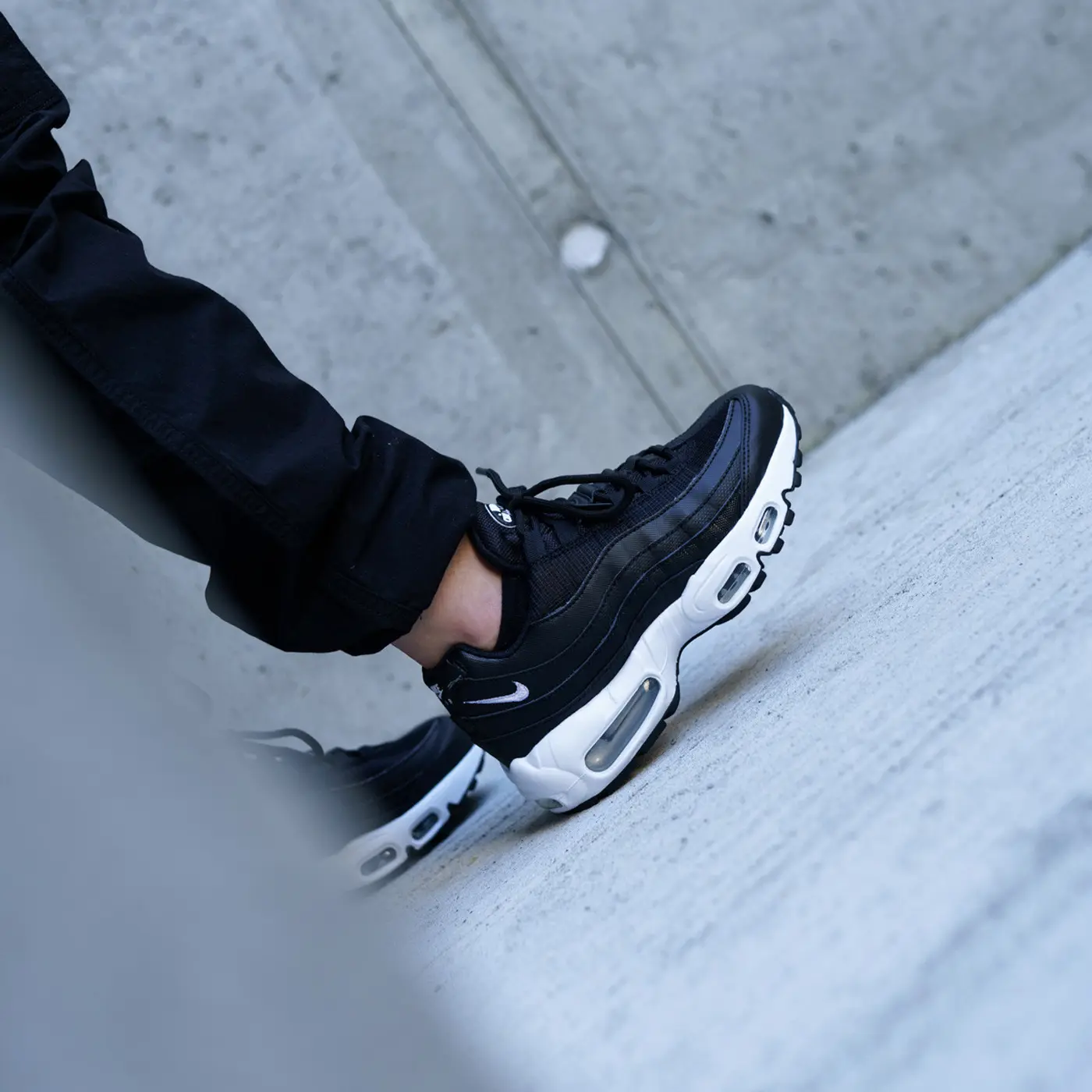 Modelul Nike Air Max 95 este unul dintre cele mai recognoscibile din istoria brandului, iar varianta păstrează ADN-ul clasic, adăugând un look modern și versatil prin combinația de culori negru/alb.