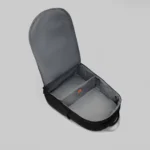 Buzunarul cu fermoar poate ține un laptop de până la 16″.