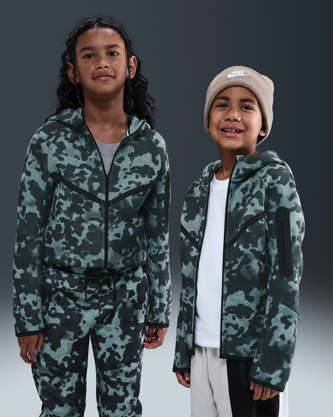 Hanorac Nike Tech Older Kids’ (Boys’) Full-Zip Camo Fleece Hoodie (HQ8891-017)