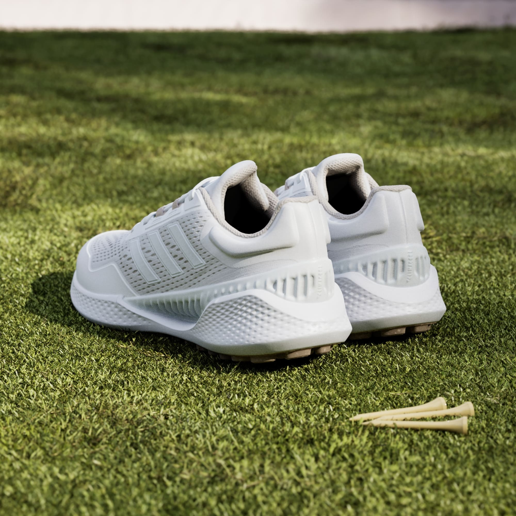 Зашнуруйте и наслаждайтесь комфортом в течение всего дня для общения и не только. Эти кроссовки для гольфа без шипов, вдохновленные легким и отзывчивым ощущением беговой обуви, обеспечивают надежную стойку и стиль на весь день и в любом месте. Водонепроницаемый кожаный верх и защитный носок сохраняют ноги сухими на влажных лужайках, а подошва Adiwear без шипов и поддерживающая пятка обеспечивают устойчивость и сцепление для надежной стойки, а также облегчают переходы за пределы поля.