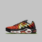 Этот силуэт, разработанный Шоном Макдауэллом как эксклюзив для Foot Locker в 1998 году, представил новую градиентную отделку и настроенную воздушную амортизацию в линейке беговых кроссовок Nike. В своем последнем предложении любимцы Великобритании возвращаются к своему первому релизу «Magma», надев сетчатый верх с градиентом, напоминающим закат. Акценты оранжевого, желтого и белого цветов воссоздают естественное явление, а окружающие черные накладки из ТПУ и компоненты подошвы уравновешивают привлекательную композицию. Тем не менее, профильные галочки и значки на верхней части язычка еще больше оживляют вариант Air Max своим неоново-зеленым оттенком. Вместе каждый вышеупомянутый компонент создает стиль, который обязательно привлечет внимание.