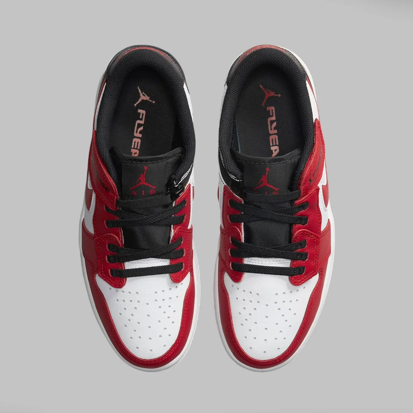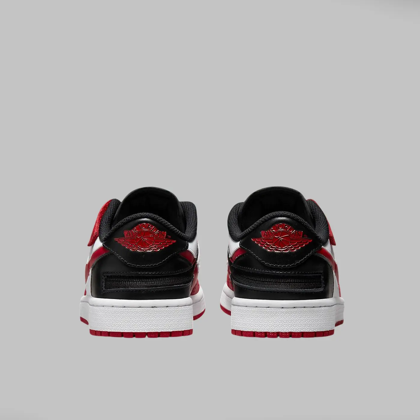 Кроссовки выполнены из белой кожи с накладками и акцентами красного и черного цветов. Красный цвет присутствует на защитной накладке, накладках для шнурков и логотипе Swoosh, а черный — на нейлоновом язычке, заднике и задней петле. Логотип Wings также выполнен в красном цвете на пятке, как и логотип Jumpman на язычке, а логотипы Jumpman и FlyEase расположены сбоку. Для удобства надевания кроссовки используют систему шнуровки на липучках и молнии. Завершают образ белая межподошва и подошва красного цвета.