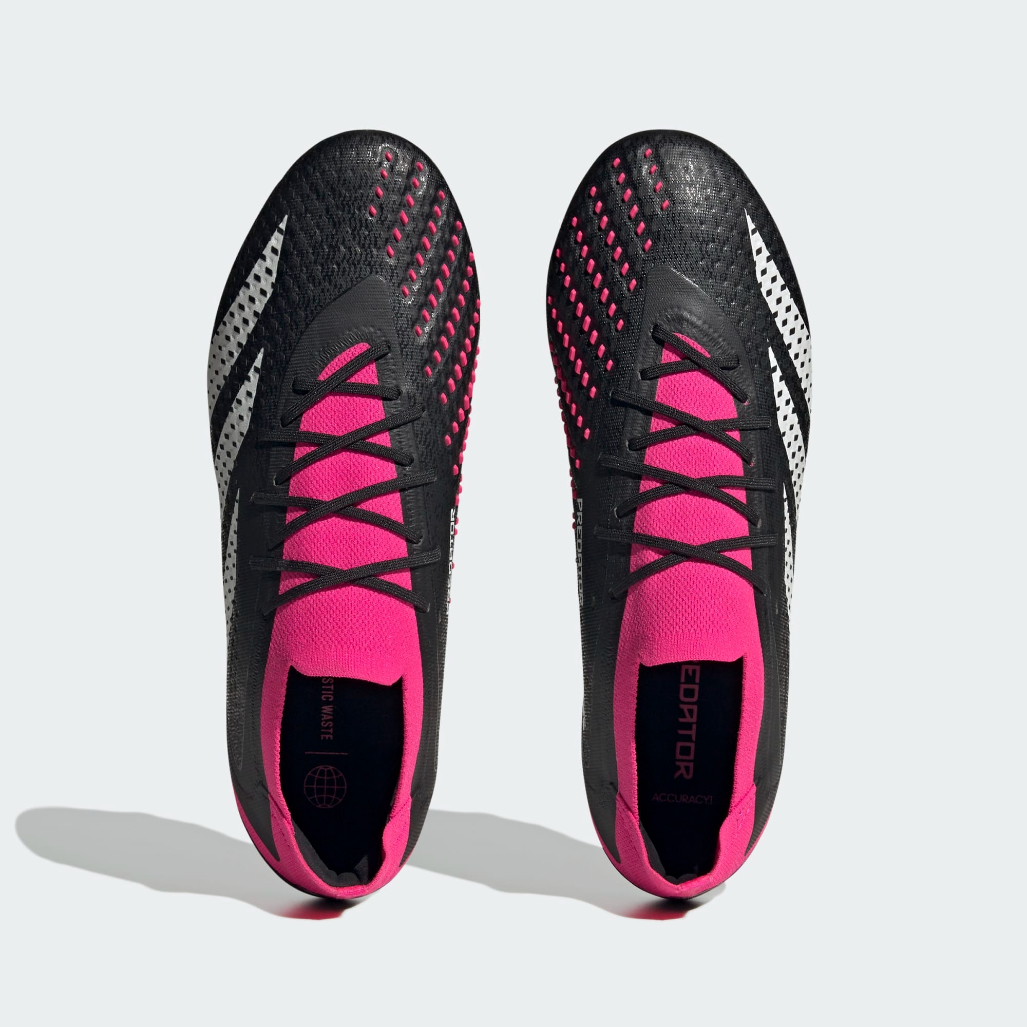 Одевайтесь и будьте готовы к действию с ботинками Predator Accuracy.1 Low Firm Ground. Эти бутсы, имеющие опыт поддержки игроков в самые ответственные моменты, созданы для того, чтобы дать вам уверенность, необходимую для создания решающих моментов в игре. Стратегически расположенная технология захвата высокой четкости расположена в зонах удара, помогая поддерживать точное вращение и направление мяча. Верх HYBRIDTOUCH обеспечивает формованную посадку с амортизацией в ключевых зонах контакта для комфорта и мягкого касания мяча, а разделенная конструкция FACETFRAME разработана для оптимизации передачи энергии для идеального удара. Изготовленная из различных переработанных материалов, эта подкладка содержит не менее 50% переработанного сырья. Этот продукт — лишь одно из наших решений, помогающих избавиться от пластиковых отходов.