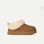 Вам нравится модель Tazzelle, но вы хотите еще больше уюта от UGG®? Тогда Tazzelle — именно то, что вам нужно. Эти ультрамягкие домашние и уличные тапочки выполнены из натуральной замши и имеют легкую платформу высотой 1,75 дюйма из упругого ЭВА из сахарного тростника. Внутренняя подкладка из овчины продолжается на мягкой фиксированной манжете, поэтому их можно носить как с носками, так и без них.