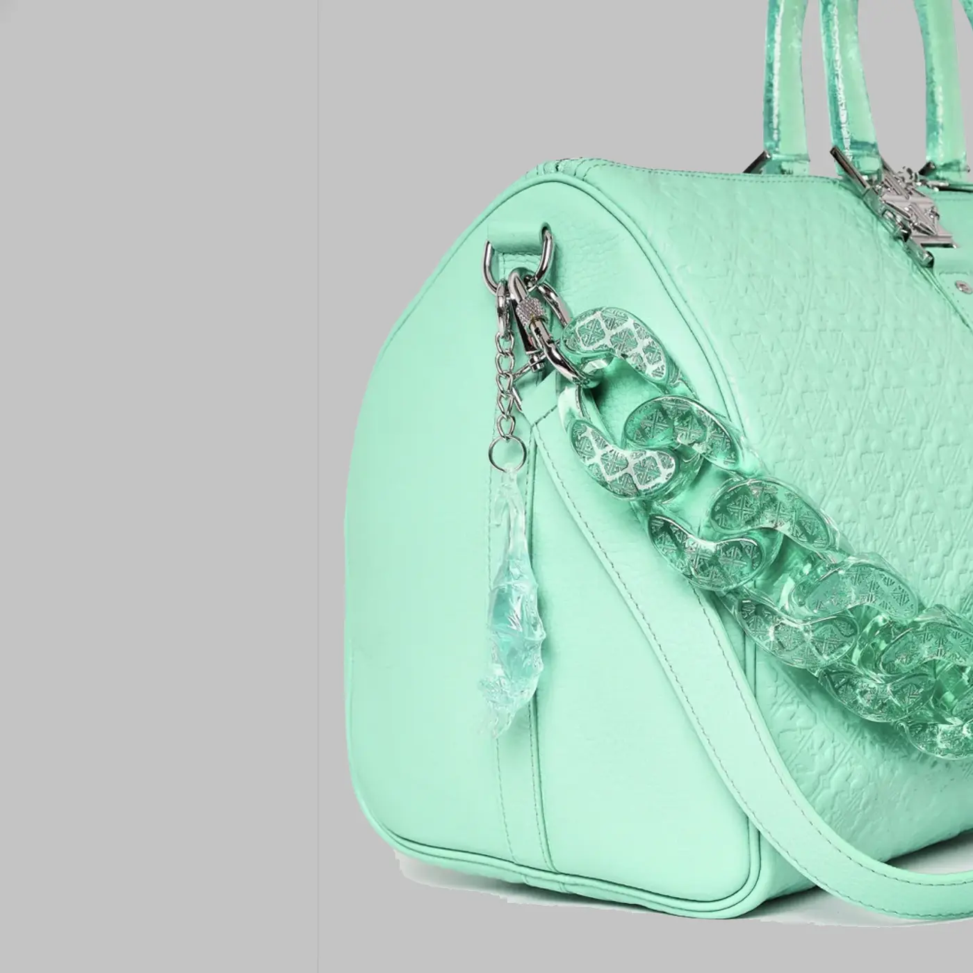 Эффектная акриловая цепочка: полупрозрачная цепочка с выгравированным логотипом бренда добавляет современный и стильный штрих.