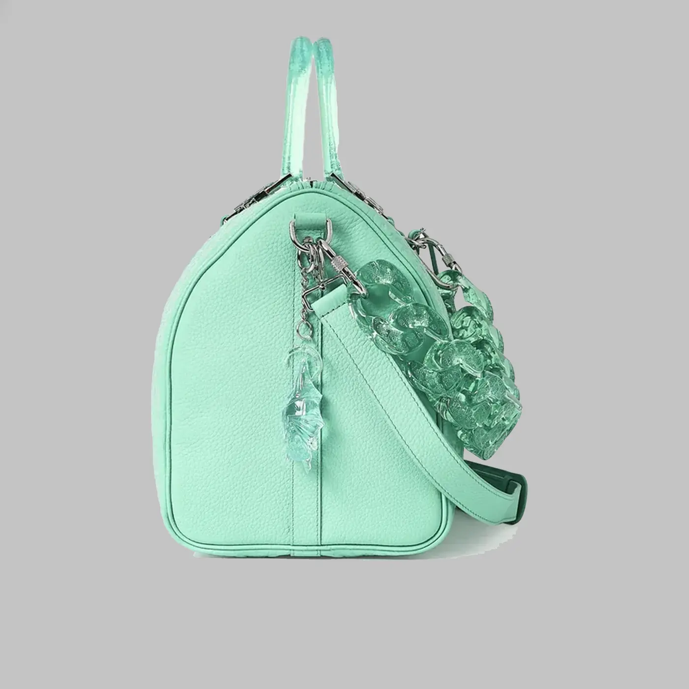 Сумка-даффл Guapi Tiffany Blue Tiffany Blue – это смелый и роскошный аксессуар, вдохновленный ярким и мгновенно узнаваемым цветом. Оттенок «тиффани» придает сумке ощущение высокого класса, а силуэт даффл делает ее практичной как для путешествий, так и для повседневного использования. Она одновременно функциональна и эффектна.