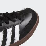 Быстрые перемещения по полю — вот что такое игра в зале. Samba не зря доминирует в мини-футболе уже несколько десятилетий. Эта детская версия легендарных бутс отличается кожаным верхом и лёгкой промежуточной подошвой из ЭВА для лучшего сцепления на покрытиях в помещении.