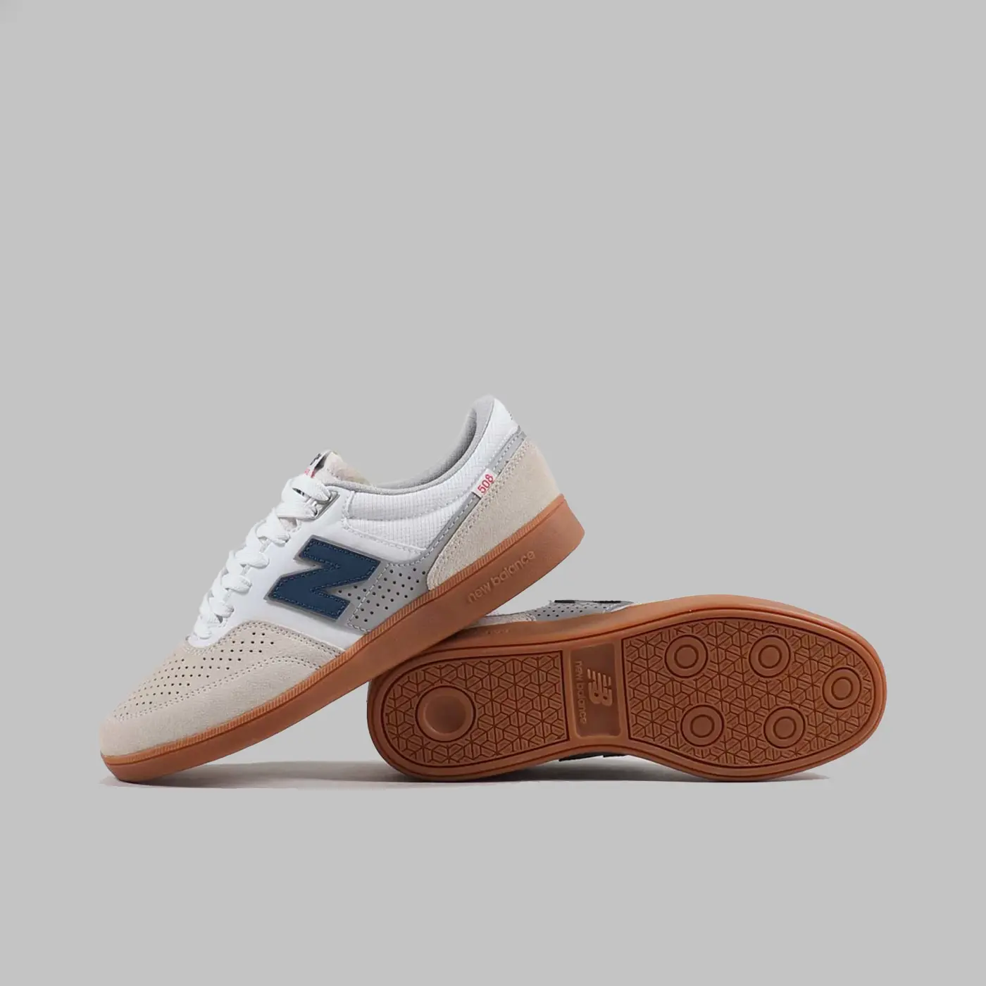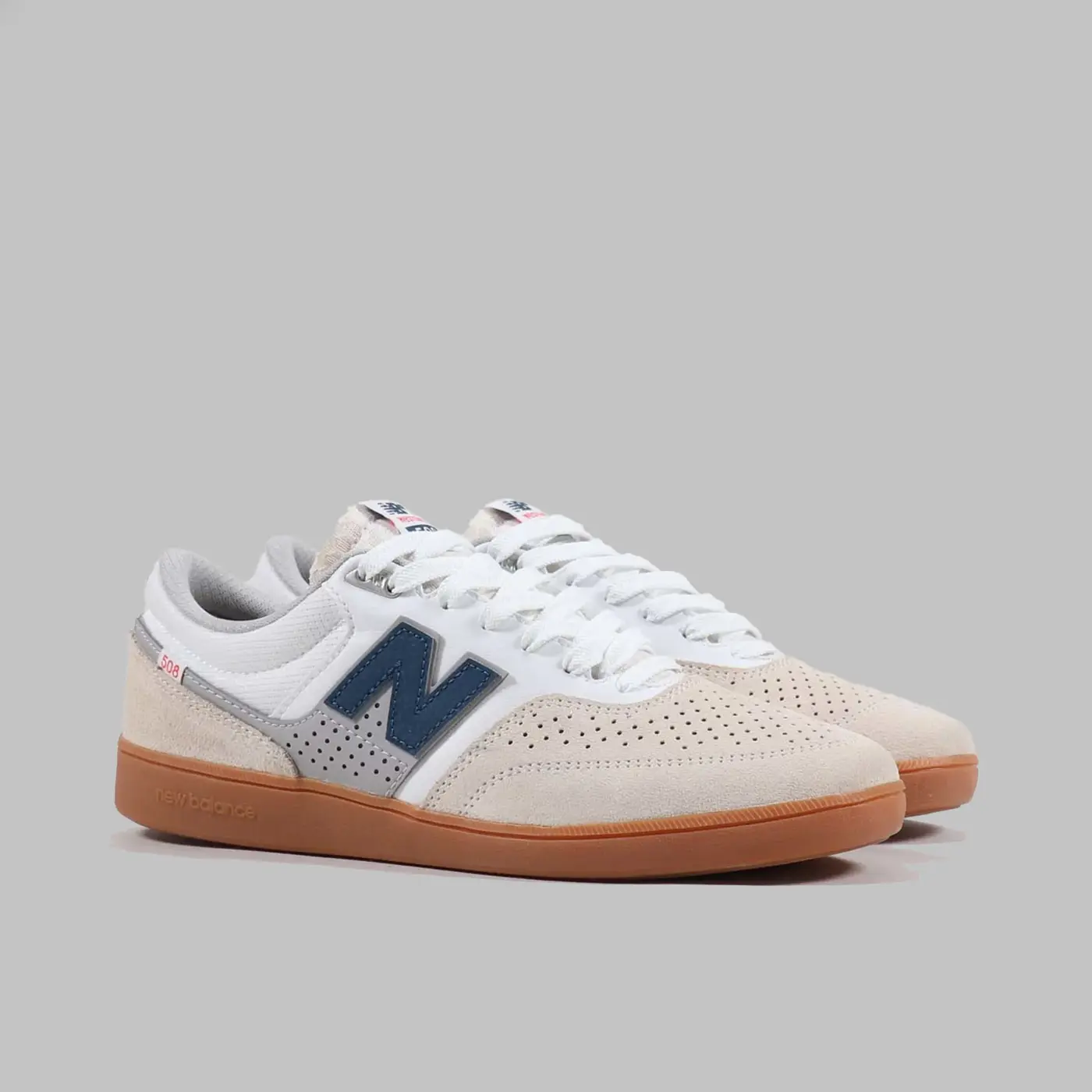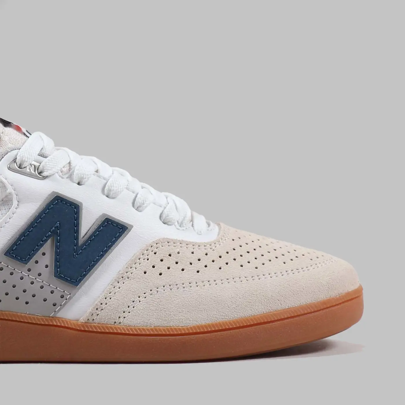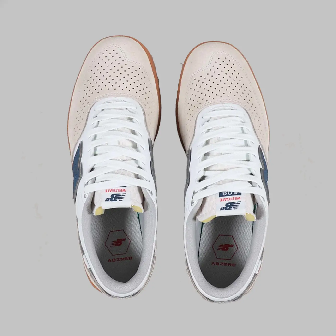 Кроссовки для скейтбординга от New Balance Numeric и райдера Брэндона Вестгейта, изготовленные из смеси перфорированной замши, кожи и текстиля в верхней части, с мягким воротником и язычком.