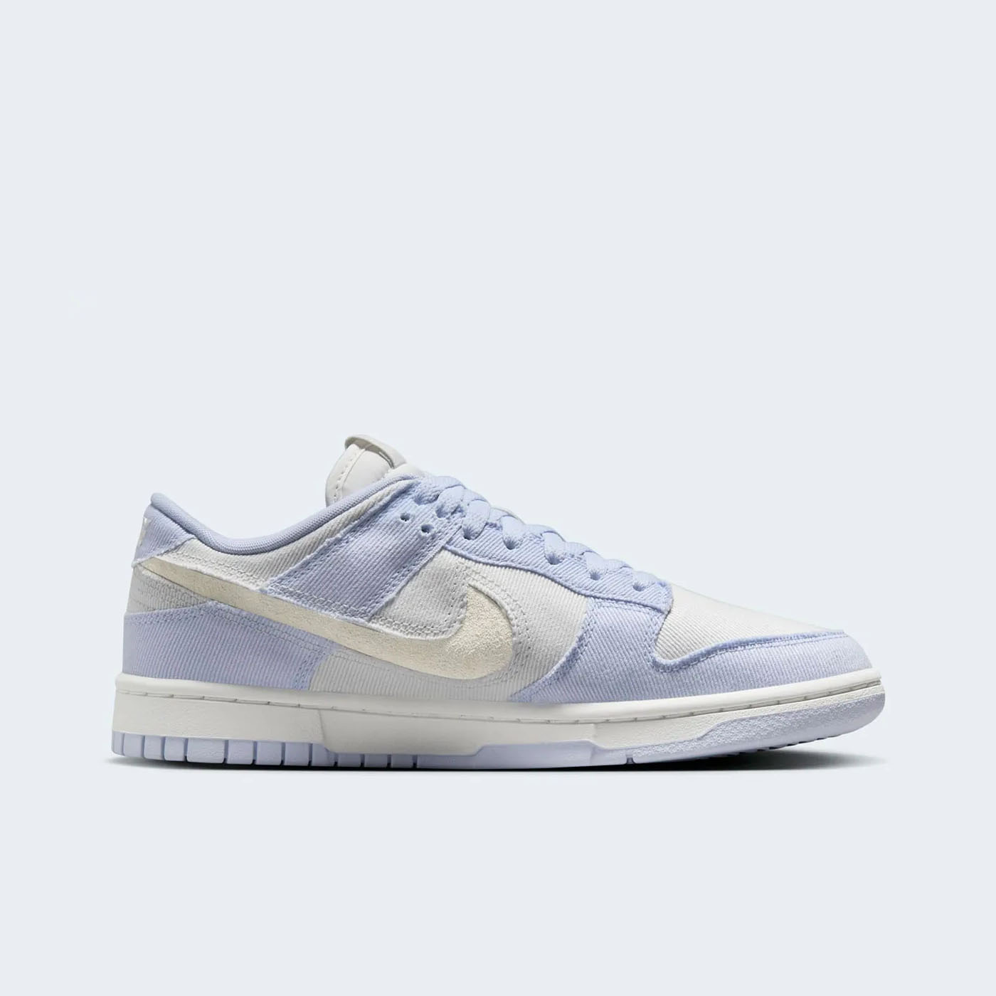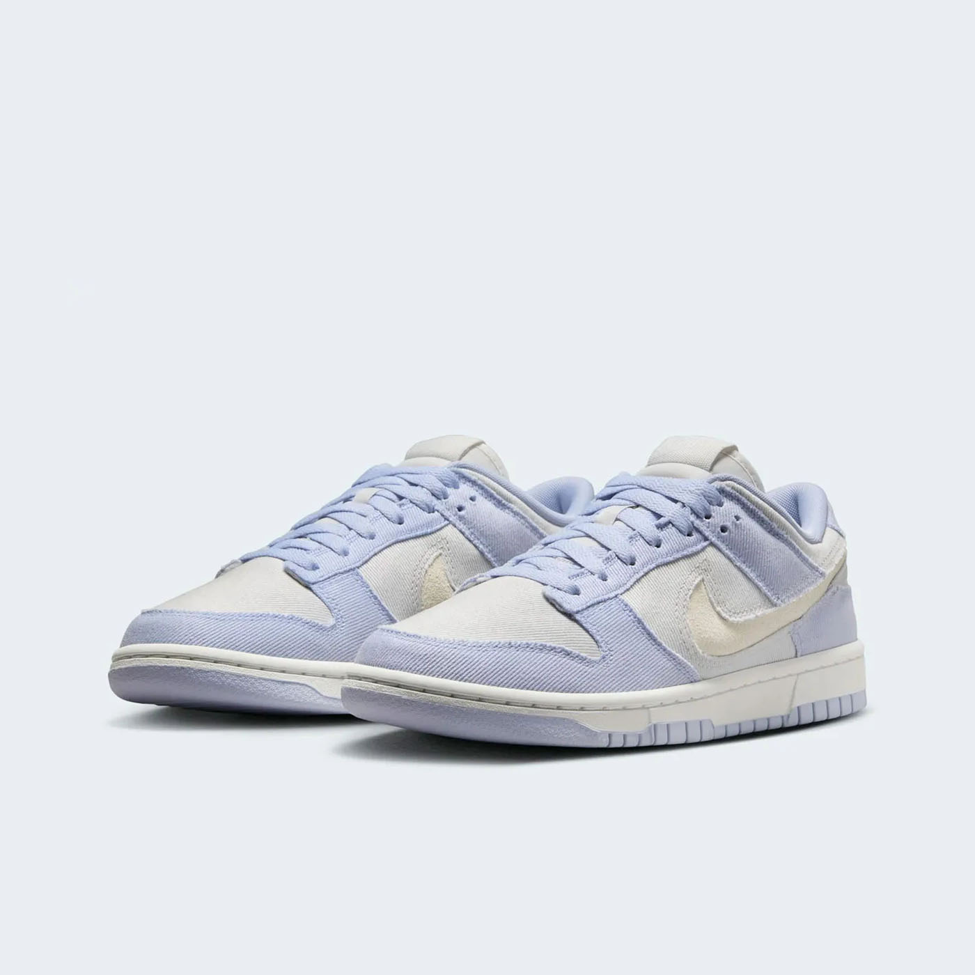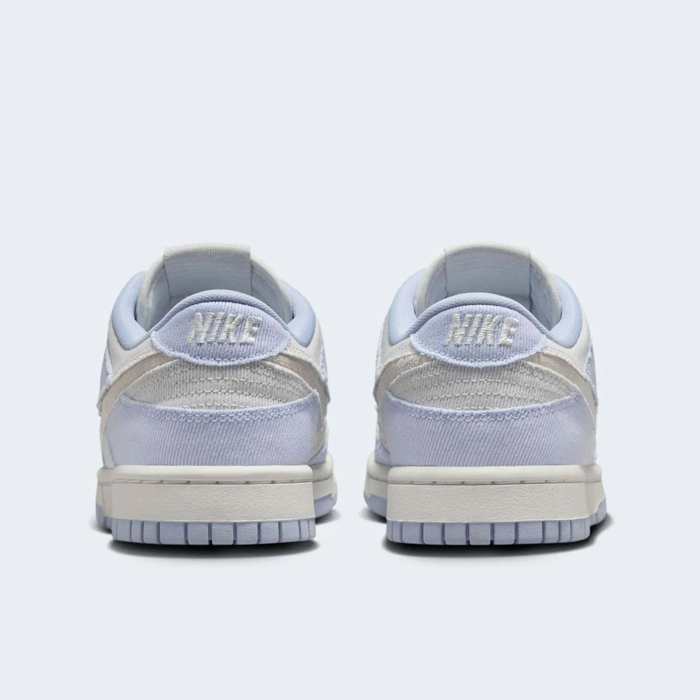 Материалы: Верхняя часть кроссовок выполнена из твилового денима светло-индигового оттенка, называемого «Ghost». Основные панели, такие как носок, боковые части и воротник, отделаны в цвете «Platinum Tint», создавая тонкий контраст. Боковой логотип Swoosh вырезан, открывая нижний слой из замши цвета «Summit White», что придаёт дизайну уникальность .