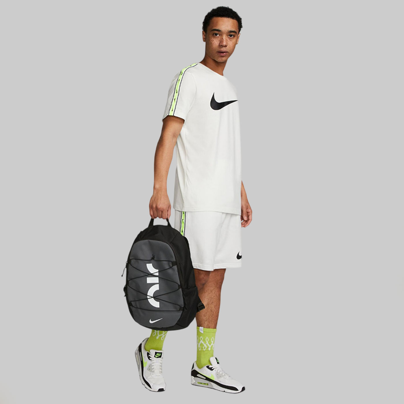 Носите все необходимое стильно с этим рюкзаком Air от Nike. Изготовленный из прочного тканого полиэстера, этот рюкзак представлен в черном цвете для классического вида. Он имеет просторное основное отделение с надежной застежкой-молнией и передний карман на молнии для организации ваших вещей. Он оснащен мягкими регулируемыми плечевыми ремнями и петлей для переноски сверху, а также украшен логотипом Nike Air на передней части.