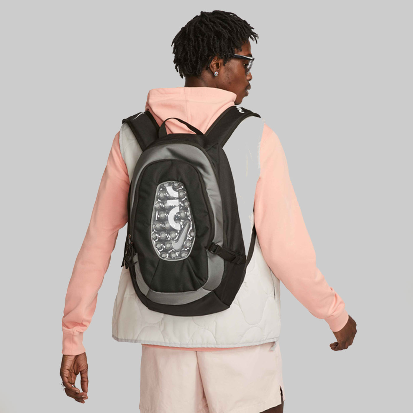 Видите этот пузырек на передней части рюкзака Nike Air? Он вдохновлен культовыми Air Max 90 — и так же удобен, как и сами кроссовки. Мягкая задняя панель с сетчатыми вставками поможет вам оставаться в прохладе во время долгих прогулок, а просторные отделения и карманы вместят все необходимое для дня. Бонус: большие застежки-молнии с логотипом Swoosh обеспечат легкий доступ к необходимым вещам.